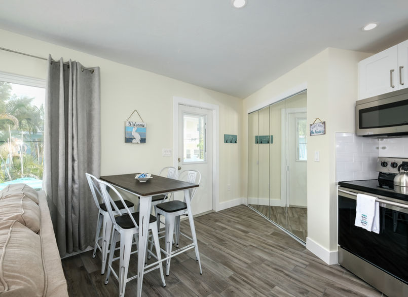 The Sunshine Unit is well described as the Sun fills this 2nd floor Studio from many angles. The Sunshine Unit is newly remodeled and is well supplied. Feel the luxury of the Stainless Steel appliances and Granite counter tops. It has a FULL size refrigerator with Ice Maker. You can save money and make some meals in your private kitchen. Sleep well on the high end mattress and linens. When you wake-up make a full pot of coffee or the one use pods. We even supply Beach Wagons, Beach Chairs, Beach Umbrellas, Soft Beach Cooler, and Beach Towels. Our Location is the BEST with Beaches & Village in short walking distance. If you want to go further, the free Trolley or one of the many free rides will take you around Siesta Key. If you want to venture off Siesta Key you will be pleased with all Sarasota has to offer.